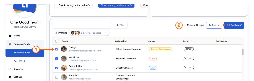 With One Good Card for Teams, admins will be able to bulk update multiple profiles at the same time, ensuring consistency, saving hours of manual work, and keeping every card on-brand.