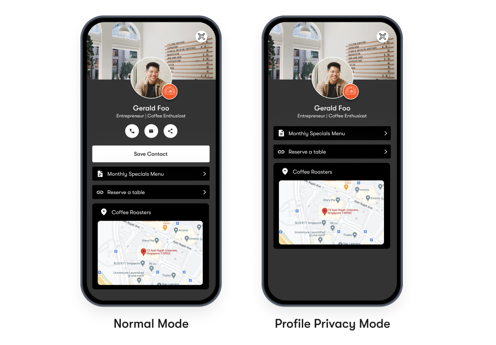 - Use Profile Privacy Mode when sharing your card at large public events or expos.