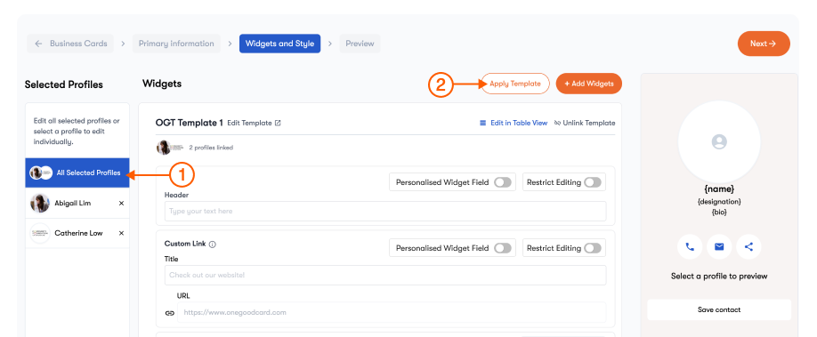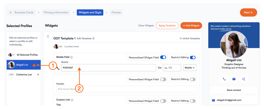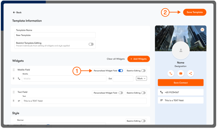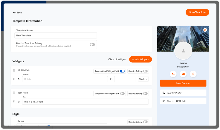 Team Templates help admins design and manage consistent digital business card profiles for their entire organisation, without manually editing each profile one by one. With templates, you can centrally control branding, layout, and widgets, while still allowing flexibility for individual team members where needed.